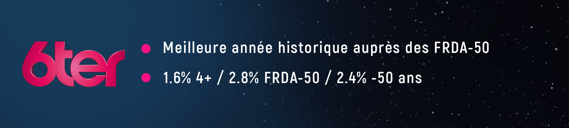 - Succès de la 2ème saison des TRAÎTRES avec 2.7M de téléspectateurs / 36% FRDA-50 / 34% -50 ans en moyenne