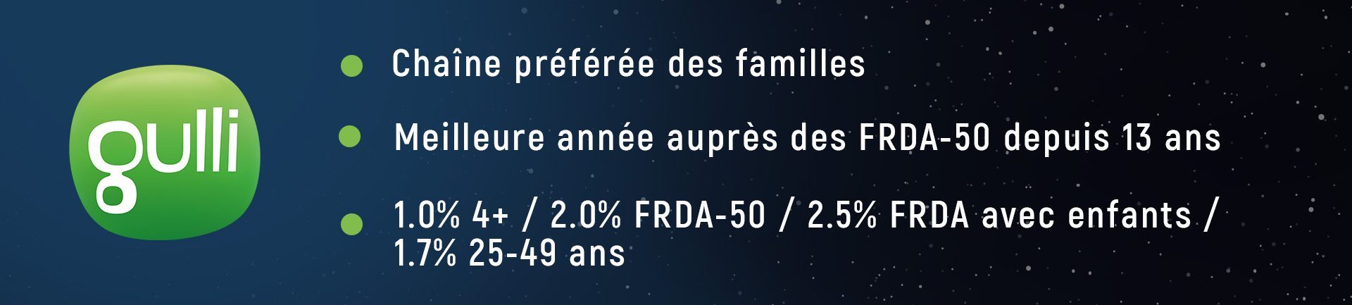 GULLI PRIME : année historique en soirée auprès des FRDA-50 / FRDA avec enfants / 25-49 ans