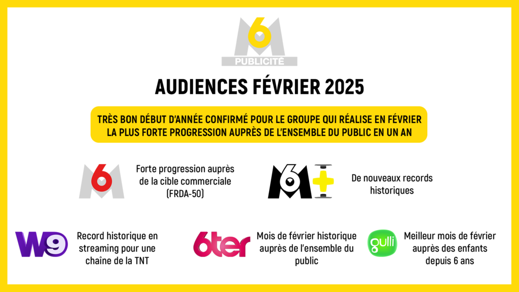 Sources : *Médiamétrie / Médiamat (calendaire) – Agrégat M6 à la demande, W9 à la demande, 6ter à la demande, Gulli à la demande – Couverture quotidienne / Couverture mensuelle* Données internes M6+