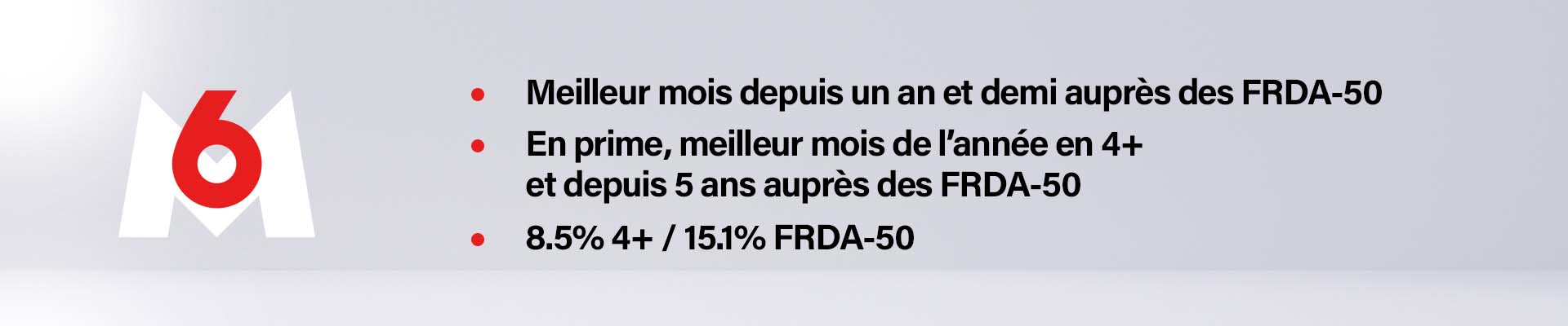 M6 se classe large leader auprès des FRDA-50, des -50 ans, des FRDA avec enfants, et des enfants