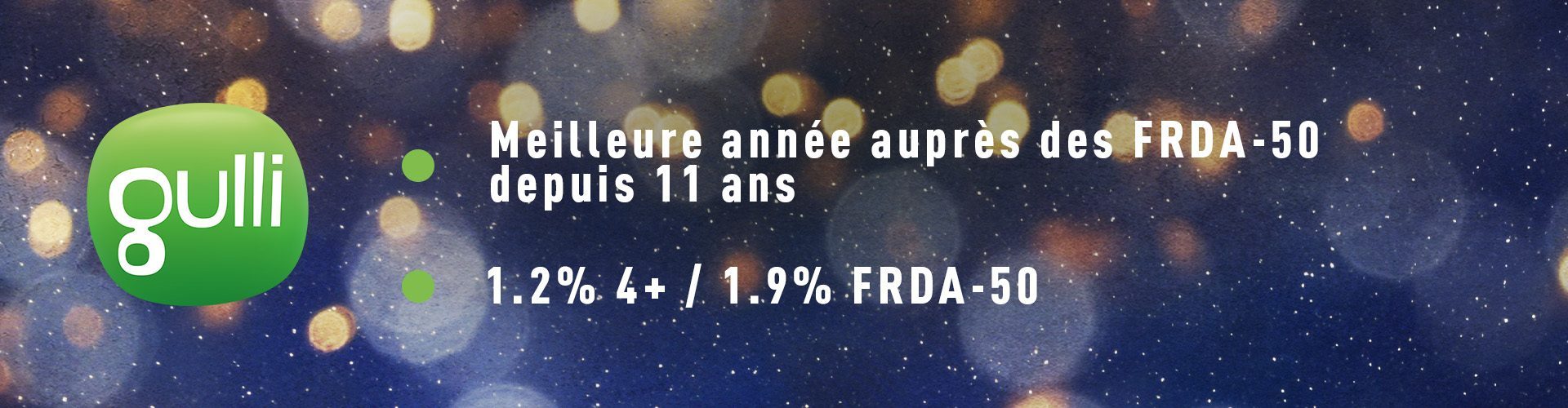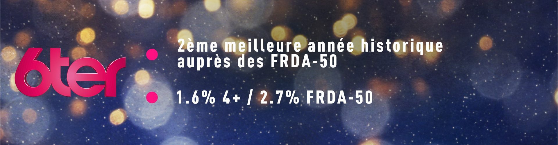 Meilleure année auprès des FRDA-50 depuis 19 ans et depuis 15 ans auprès des -50 ans - CAPITAL : 12% 4+ / 20% FRDA-50 / 2.2M° en moyenne sur l’année