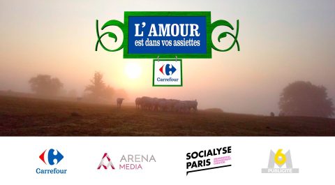Carrefour, parrain de la 15e saison de L’amour est dans le pré, accompagné de ses agences Arena Media et Socialyse Paris, s’associe à M6 Publicité pour une campagne TV, digitale et sociale nommée « L’amour est dans vos assiettes ». Du 12 octobre au 14 décembre sur M6, 6play et les réseaux sociaux, Carrefour propose de faire découvrir ses « Filières Qualité ».