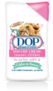 Roxane, première « digital mum » sur YouTube en France, a été choisie par DOP pour créer un nouveau gel douche « Douceurs d’enfance au parfum de cookie ». Distribué à 400000 unités, ce produit a été conçu en collaboration entre la marque et l’influenceuse, du choix du parfum au design de l’étiquette.