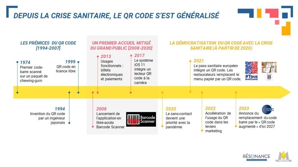 On assiste à un nouveau cap en 2023 où le potentiel d’usage du QR code s’élargit avec l’annonce par Global Standard 1 (GS1) de la mise en place d’un QR Code augmenté GS1 d’ici 2027 qui remplacera progressivement le code-barres des emballages de produits de grande consommation Ce QR code augmenté est une nouvelle opportunité pour les marques de développer un accès simplifié à la traçabilité des produits, de générer plus de confiance et d’engagement vis-à-vis de leurs clients grâce à ces nouvelles interactions.
