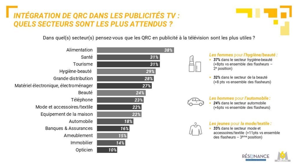 Concernant les secteurs pour lesquels il y a le plus d’attente, il s’agit globalement des secteurs qui touchent directement le consommateur dans son quotidien comme l’alimentation (38% des flasheurs) ou la santé (31%). Quelques opportunités sectorielles ont été identifiées en fonction du profil sociodémographique des flasheurs, par exemple, l’hygiène-beauté est le 2ème secteur le plus attendu auprès des femmes.