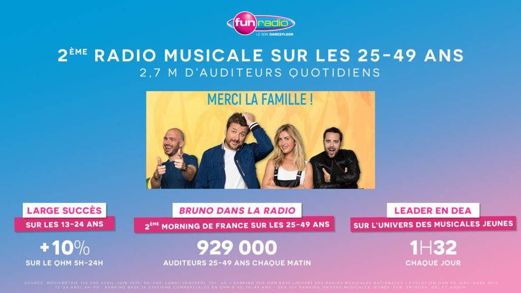 Chaque jour Fun Radio réunit plus de 2.7 Millions d’auditeurs.