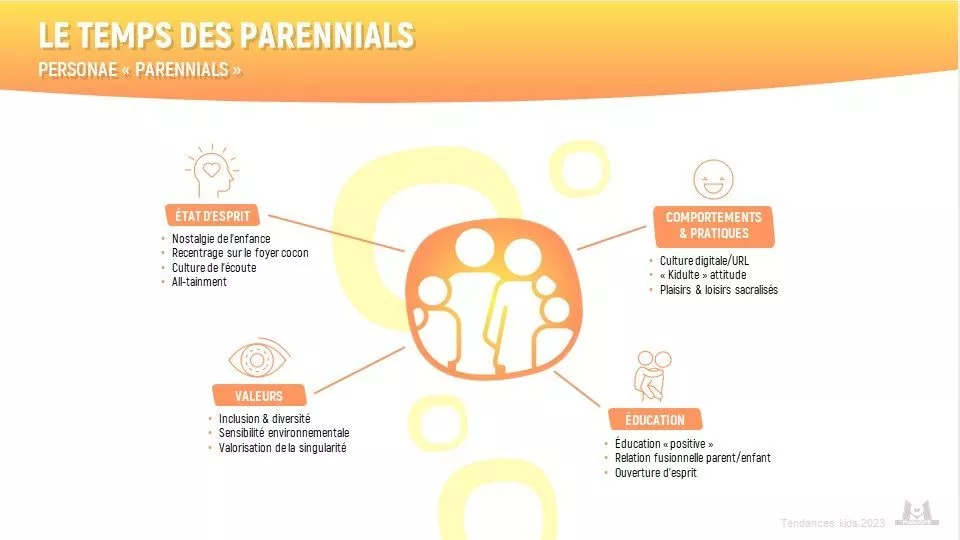 Les parennials adopte une attitude ‘kidulte’ de manière plus assumée. Ils partagent une culture numérique commune avec leurs enfants, nés à l’ère du digital, ce qui réduit la fracture numérique par rapport à la génération précédente. Toutefois, ils sont également plus vigilants à protéger leurs enfants des aspects toxiques du digital.