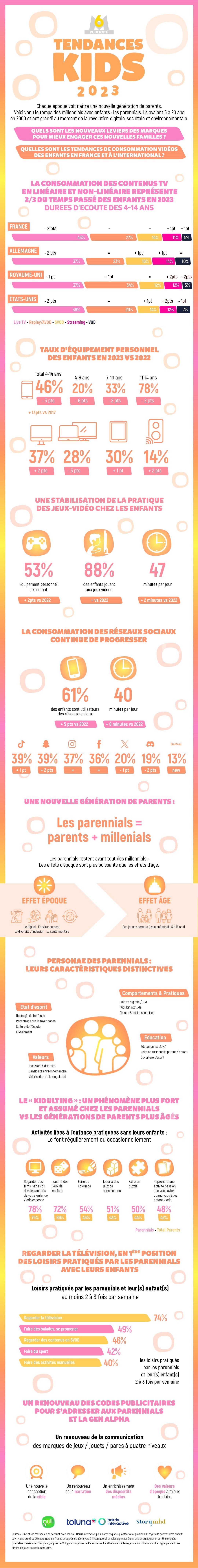 *Sources : Une étude réalisée en partenariat avec Toluna – Harris Interactive pour notre enquête quantitative auprès de 882 foyers de parents avec enfants de 4-14 ans du 05 au 25 septembre en France et auprès de 400 foyers à l’international en Allemagne aux Etats-Unis et au Royaume-Uni. Une enquête qualitative menée avec Storymind, auprès de 14 foyers composés de Parennials entre 28 et 44 ans interrogés via un bulletin board en ligne pendant une dizaine de jours en septembre 2023.