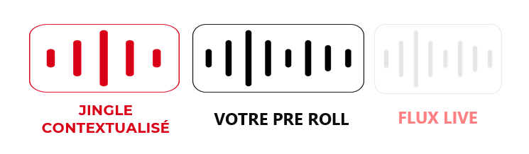 - Allez encore plus loin dans la personnalisation, associez votre jingle aux couleurs de votre marque avec un message en pré-roll ou mid-roll précédé d’un jingle personnalisé.