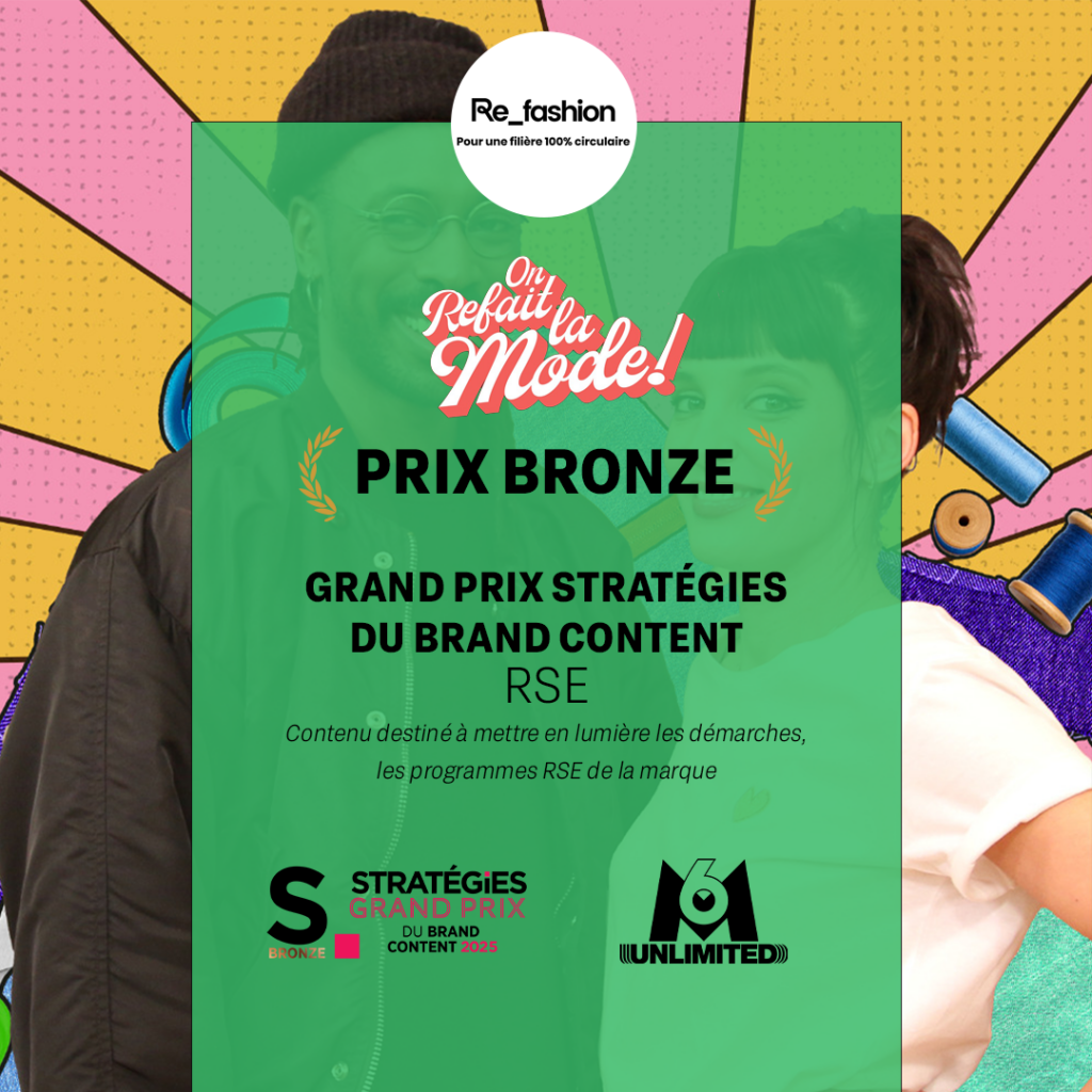 M6 Unlimited a remporté le Bronze au Grand Prix Stratégies du Brand Content, dans la catégorie RSE, pour le programme « On Refait la Mode », conçu en collaboration avec Refashion, McCann Paris et UM.