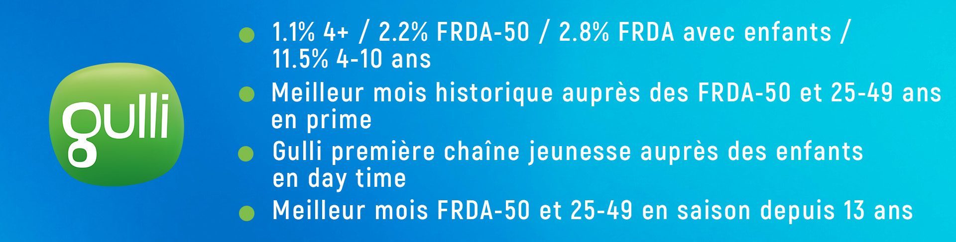 - Record pour une production de Gulli en prime depuis près de 10 ans auprès des 25-49 ans