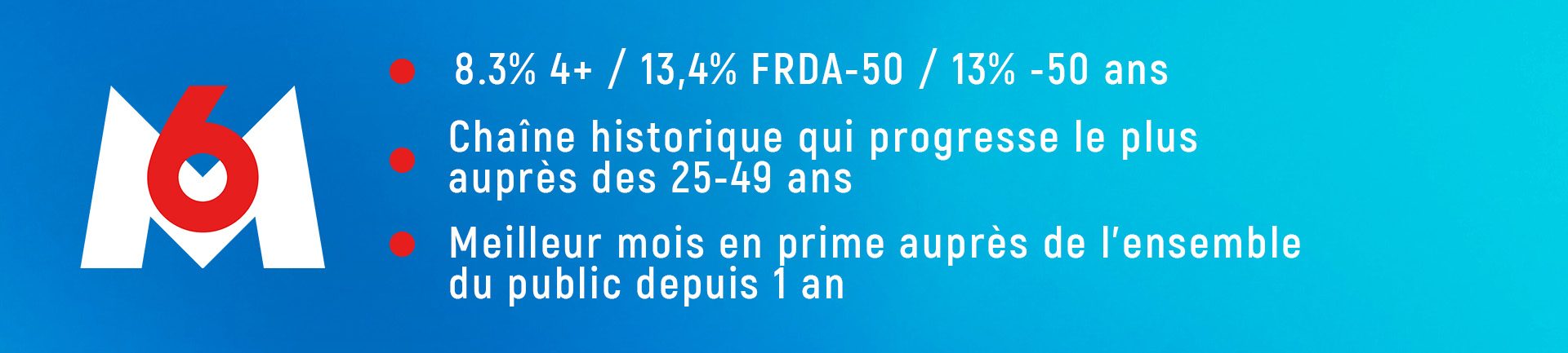 - M6 se classe leader 4+ / FRDA-50 / -50 ans sur l’ensemble du mois