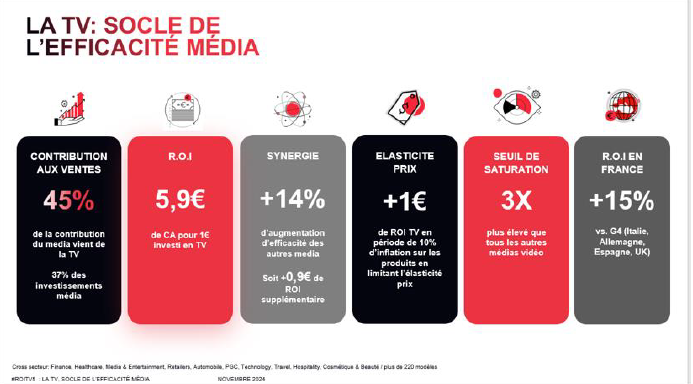 Dernier point notable : la TV Française offre le meilleur ROI Européen, surpassant ses voisins de +15%.