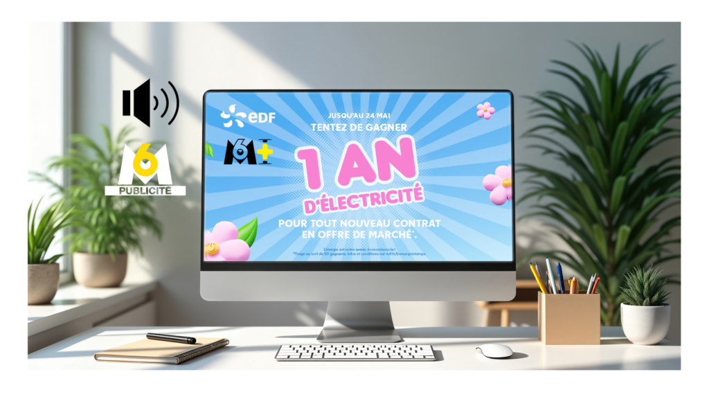 Déployé du 5 au 24 mai 2025 dans le cadre de la campagne « Bonus Printemps » – qui propose à 50 nouveaux clients de gagner un an d’électricité – ce format est activé en programmatique sur la plateforme M6+, dans un environnement multi-device.