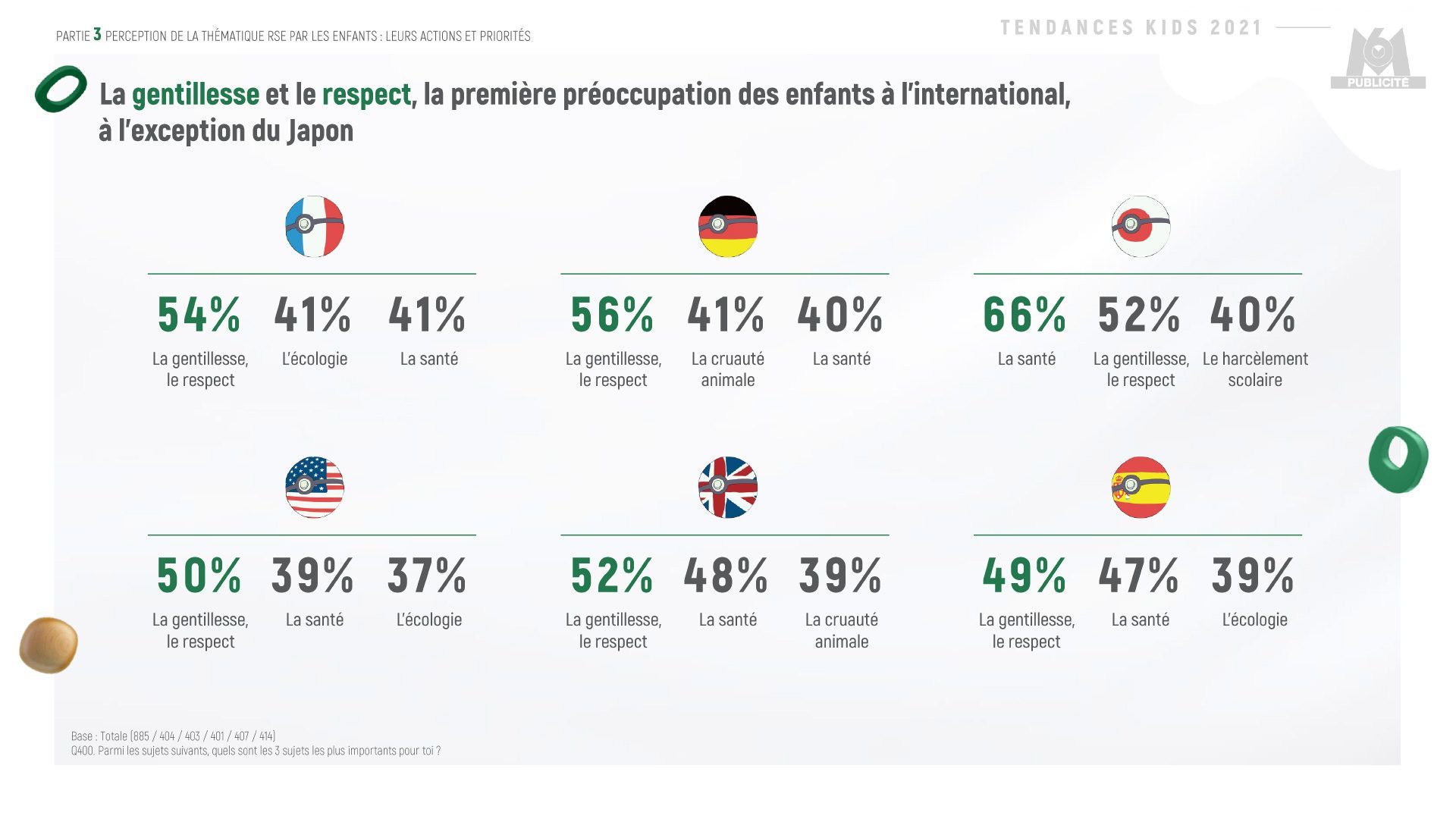 En ce qui concerne leurs préoccupations environnementales et sociétales : la gentillesse, l’environnement et la santé arrivent en tête des préoccupations des enfants en France, même si elles divergent selon l’âge.